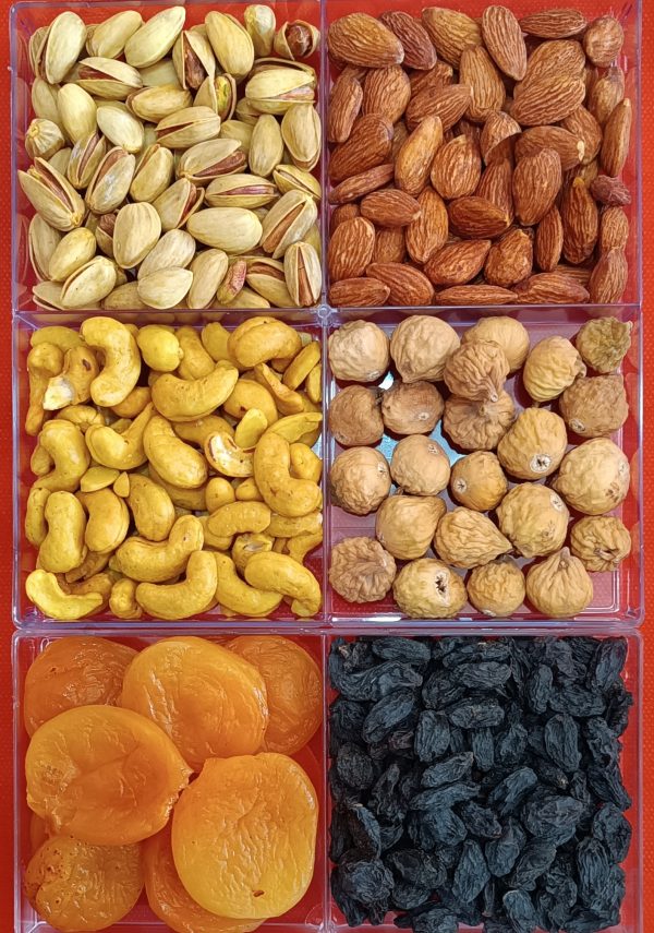 شامل پسته اعلا، بادام هندی، بادام درختی، انجیر، قیسی و مویز
